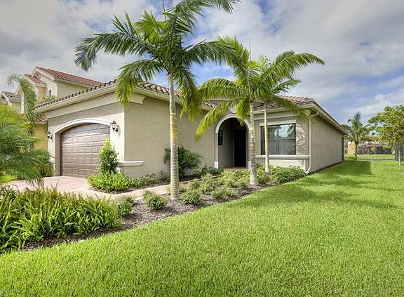 Welcome to this charming lakefront home in the widely popular Marbella Isles. This home was recently built in 2015 with Hurricane Impact Glass and survived Irma without a scratch - not even a broken roof tile! The home sits on a premium western exposure lakefront lot featuring Naples' beautiful year round sunsets! The floor plan offers a large great room area with a spacious open kitchen and 3 bedrooms with 3 baths plus a den that could be converted to a 4th bedroom. Tile flooring was upgraded throughout the entire home (no carpet anywhere) along with granite counter-tops & upgraded cabinetry in kitchen and in all bathrooms. The Master bedroom is large and boasts 2 walk-in closets and a luxurious master bath! The home layout is split giving the master suite and guest rooms ample privacy. Marbella Isles amenities are unmatched with a large clubhouse including fitness center, game room, aerobics room, social hall, tennis/pickle ball courts, and an outstanding resort style pool and separate water park and play area for kids. Marbella Isles also employs a great social director who keeps residents busy with events all year round! Don't let this home pass you by!