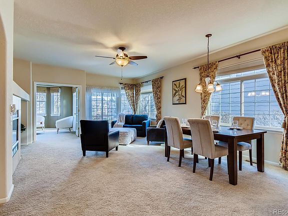 This ranch style paired home in Villas at the Boulders in the Broadlands is something special! Backing to common green space with a walking path, this location can't be beat! This home offers everything you could ever need on the main floor, with the added bonus of an 800 square feet finished basement! Upon walking through the front door you're greeted by a generous entryway that leads to the great room. The great room boasts comfortable living & dining room space with a gas fireplace. Off the great room is a den with glass paned french doors. The kitchen has hardwood floors, a breakfast nook, pantry, plenty of cabinet & countertop space, and all appliances are included. The master suite features 2 custom closets and a 5 piece bath with a soaking tub. Rounding out the main floor is a guest bedroom, full bath, and the laundry. The basement has been finished to include a family/recreation room, a study or craft room, 3/4 bath, and storage space with built-in wine racks. Enjoy your morning coffee on the back patio overlooking the beautifully manicured grounds. Newer water heater and a/c. 2 car attached garage with built-in cabinetry. Conveniently located to multiple shopping & dining opportunities.