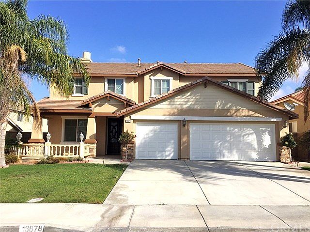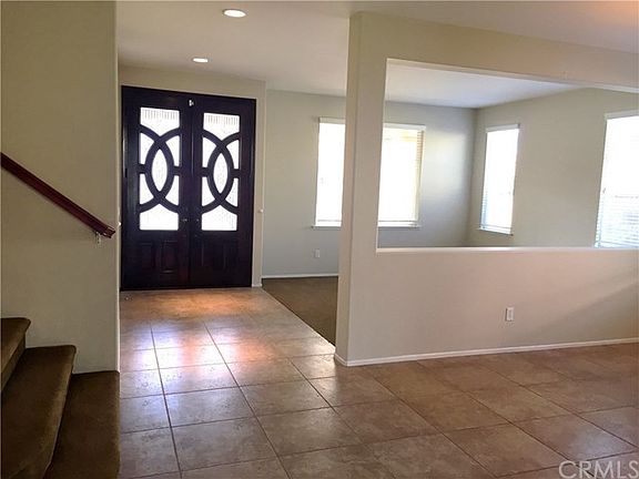 Spacious & Gorgeous Eastvale 2 story home. This 5 bedroom 3 bathroom home has glass paned front entry doors. Tile throughout from entry to kitchen. Upstairs have 4 bedrooms and 2 bathrooms plus huge bonus room. One bedroom and bathroom downstairs. Two stairways to upstairs. Kitchen has stainless steel appliances, granite counters, island and dark wood cabinets. Fireplace in the family room. Separate laundry room. Master has fireplace and retreat. Master bath with spa tub, sink, and separate vanity. Huge backyard with beautiful grass for entertaining. 3 car attached direct access garage. Quiet and convenient location to school, park, shopping center and easy to access to freeway 15,60,91 & 71. It's a must see and will be leased fast home. Don't miss it.