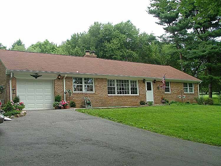 This brick rancher, with fully finished walk-out basement, is situated on 1.25 acres. Rooms on the main level include three bedrooms, a large kitchen, breakfast nook, dining room, formal living room, and laundry room with hardwood floors throughout, and two full baths. The kitchen has been updated with new cherry cabinets, quartz countertops, kitchen island, new stainless steel appliances including a double wall oven, cooktop, and door-in-door French door refrigerator. The breakfast nook has a brick surround fireplace. The main bathroom has new custom cabinetry, a double sink w/ quartz countertop, travertine floors and Roman glass-enclosed travertine shower. The main floor master bath has been updated with ceramic tile. The fully finished walk-out basement has wood laminate floors throughout, a large recreation room, a full bar/kitchenette and a large master suite with fireplace, dual walk-in closets and bathroom with marble, glass-enclosed shower, marble floor, custom cabinetry and quartz countertop with double sink. The home also boasts a partially floored attic with drop-down stairs, new double hung windows, a new roof, attic fan and insulation, new exterior doors, and security system. The property is beautifully landscaped with trees and gardens, partially fenced, with large shed and electric dog fence.