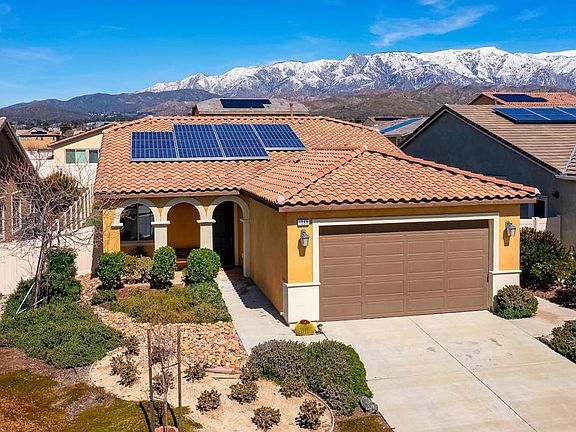 Welcome to this gorgeous single story, 3-bedroom, 2-bathroom, 2 car garage, in the highly sought after Sundance community in Beaumont WITH TESLA SOLAR! Walking distance to Starlight Elementary and San Gorgonio Middle School! This area boasts Hiking, Biking, Golf, and mountain views. Built in 2016, this beautiful home has an open floor plan that makes it light and bright, a comfortable one-story layout, with no stairs to climb, a beautiful landscaped, fenced in backyard for your kids and pets to enjoy, with a patio cover to provide a nice, shaded area. Walking distance to The Highlands Club, the neighborhood gathering spot with private event rooms, a beach entry pool, jacuzzi spa, lounge area, playground, picnic tables, basketball court and BBQ pits. Come see it for yourself, this one will not last!