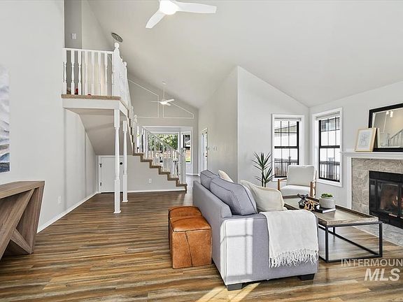 AMAZING location with easy walkability to Bown Crossing, Baggley Park, Boise River and more! Nestled against open green space in beautiful Pier Pointe, this thoughtfully updated home puts you at the center of all the best East Boise amenities. Soaring ceilings and neutral tones amplify the light and airy feel of the great room accented by a cozy gas fireplace perfect for cool, Fall evenings. Spacious kitchen complete with granite counters and ample prep space flows seamlessly into a light-filled dining area with direct access to the backyard, extending your livability outdoors. Oversized deck surrounded by lush, green grass offers the ideal backdrop for entertaining and relaxation. Upper level boasts 2 bedrooms and owner's retreat with ensuite. Soothing neutral tones, modern light fixtures and stylish flooring are just a few of the recent upgrades that make this home ready for you to move in and enjoy!