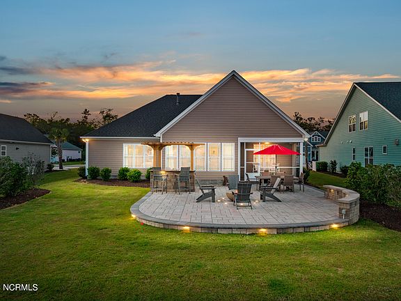 Introducing a stunning home with a modern flair in the highly sought-after neighborhood, The Retreat at Ocean Isle Beach! This beautifully crafted residence boasts an inviting exterior, great front porch, sleek and stylish interior & a backyard patio that will take your breath away. As you enter the home, you'll immediately notice the upgraded living area with luxurious finishes that exude elegance and sophistication. The open floor plan offers an abundance of natural light, making the space feel bright and inviting. A formal living room is accentuated with a gas fireplace & custom built-in shelving. The gourmet kitchen is a chef's dream, featuring sleek granite countertops & state-of-the-art Electrolux appliances. A gas range, tons of counter space, pull-out cabinetry drawers & ample pantry space make entertaining guests or cooking up a storm for your family a breeze. Dining options abound with kitchen-bar seating, an open dining room, or even take a party outside for a barbecue. The owner's suite provides ample space for relaxation and rejuvenation. A walk-in closet and ensuite bath featuring a massive shower complete the primary oasis. Off the kitchen, a hallway leads two additional bedrooms, one featuring an oversized closet and the other with a vaulted ceiling. A shared full-sized bath services these quarters as well as others in the main areas of the home. Adjoining the formal living space, you enter into an upgraded and extended sunroom that overlooks the amazing patio, large grassed lawn, and pond; complete with a water feature fountain. Step outside via the screened porch and be greeted by a beautiful patio area with a stunning fire pit, perfect for cozy evenings under the stars. The backyard offers plenty of space for outdoor activities and gatherings, making it the ideal place to host cookouts at the custom outdoor kitchen, complete with a gas grill, mini fridge, & bar top, or simply relax and unwind after a long day! Contact us today to schedule a tour!