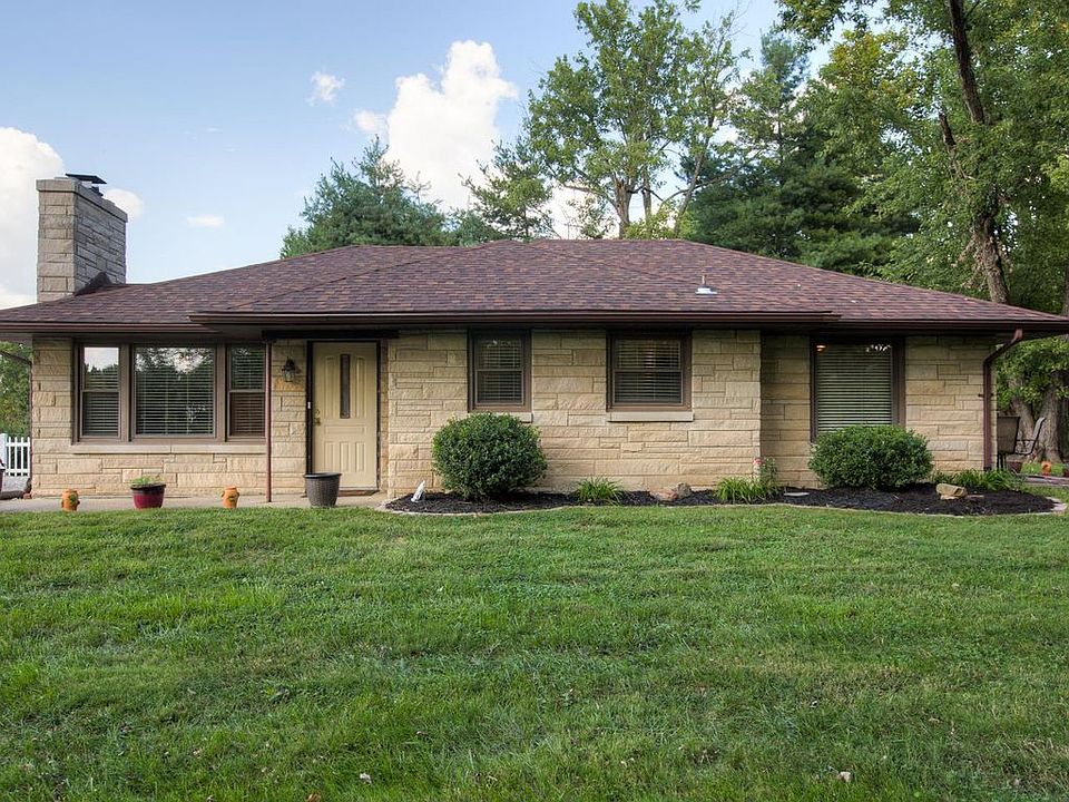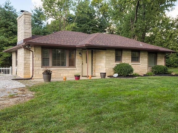 Cozy Bedford Stone Ranch on 1.6 Acres! Updates throughout, total of 1088 sqft on main floor with 2 bedrooms, 1 full bath, living room with woodburning fireplace, built-in shelving and hardwood flooring, kitchen has pantry and custom Amish cabinets, family room has new flooring, unfinished basement totals 761 sqft. Potential for garage or pole barn to be added. Home is all Electric, kitchen appliances stay, kitchen has additional outlets, hallway has original built-ins for extra storage, home has replacement windows, wired for ethernet, basement is open and has potential to be finished. Exterior features include: roof is 3 years old, covered front porch, 2 open patios, storage shed, there are 4 parcels totaling 1.6 Acres. Total of 1849 sqft, this home is a Must See!