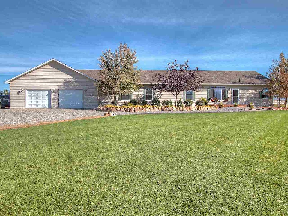 5 Acres w/6 Shares Irrigation & a Spacious 2200 sf UBC Home. The home features 4 Bedrooms, 3 full Baths, Office, Living Area and Family Room. The split bedroom design offers a 2nd Master with a full bath. The mud room gives you storage, laundry and plenty of space to kick off the boots. The abundance of cabinets in the kitchen and extra counter top space provide a great place for canning, baking or entertaining. The 36 x 32 over sized garage has 8' x 10' doors to provide plenty of room for the pickup or SUV and there is an unfinished bonus room above the garage. This beautifully landscaped property allows plenty of room for horses, a shop or barn and RV's. Well maintained, clean and offers the perfect home, acreage and close to town! To see an amazing drone tour on this property go to You Tube Channel and type in the address