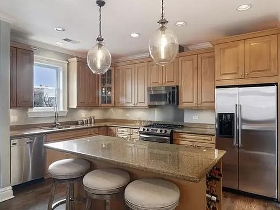 Gorgeous 3bed/2 bath condo perfectly located in Old Town! Natural light pours into this huge 1800 sqft. home with 24' wide floor plan. The stunning kitchen is updated and complete with stainless steel appliances, ample cabinet space, breakfast bar and built-in wine rack. The kitchen opens up to a bright and spacioius living room that features a gas fireplace and balcony. Entertain with ease by utilizing the separate dining room. Dark stained hardwood throughout, custom millwork and wide hallways. Master bedroom with organized walk in closet, master bath with double vanity, separate shower and soaking tub. Two outdoor spaces, one off living room and one-off rear of unit accessible through hallway. One car garage space included with private driveway. Come see our beautiful home today