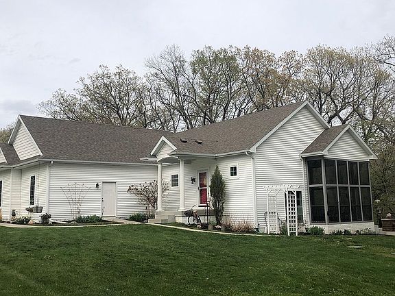 Modern 3BR ranch located just outside Boone, IA, 1/4 mile from Honey Creek Golf Course, and less than 2 miles from Ledges State Park. Main floor features open floor plan, large windows overlooking formal patio and beautiful woods, screen porch, and spacious Master bath. Finished basement includes 2 bedrooms, separate office, family room, storm shelter, and utility/store room. Private setting on 1.59 acres.