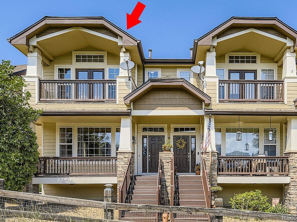 Welcome to this stunning 3 bedroom, 2 and 1/2 bath end-unit townhome, overlooking the Green on the 13th fairway of the Plum Creek Golf Course in Castle Rock. This home has breathtaking golf course views from almost all angles including the covered porch. Come inside to find beautiful cherry wood floors throughout the main level. The kitchen has gorgeous cherry cabinets that have pull-outs in all the base cabinetry. Stainless Steel appliances, granite counter tops and island. The open concept is perfect for entertaining, with a 3-sided gas fireplace, and plenty of natural light and calming scenic views of the green. Upstairs you will find three large bedrooms, all with vaulted ceilings, including the primary suite with a walk-in closet and its own private balcony overlooking the green and hillsides. The 5 pc primary bath is spacious with a large tub to relax in at the end of the day. Upstairs you will also find a full bath and an abundance of closet space to meet your storage needs. The lower level has a mudroom, coat closet, as well as large laundry room. Parking is a breeze in the attached oversized 2 car garage, which has lots of room for additions storage or a workspace. This inviting community has a gated pool and hot tub, as well as chairs to lounge on. This home is less than a 1/4 mile away from the Douglas County Fairgrounds, offering year-round shows and events. There are miles of walking, hiking, and biking trails located just outside the community. The historic, lively downtown is less than a five minute drive featuring Festival Park, which hosts free concerts in the summer. A five minute drive to Miller Activity Complex that hosts a large park and play areas, zip-lining, kid agility course and soccer fields. Live the easy life as the HOA takes care of the grounds, as well as snow removal. This home is one of the larger models in the community and has the best views of the golf course fairway, green, and surrounding hills.