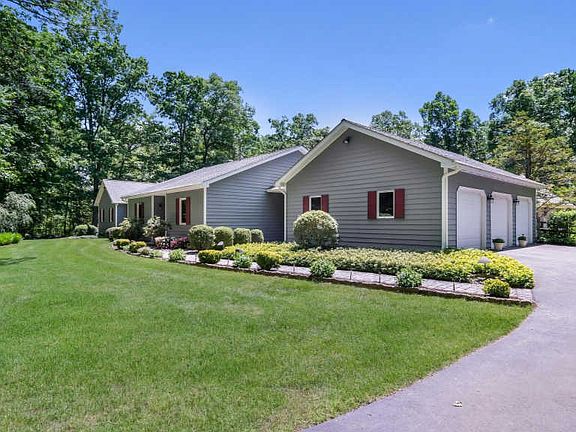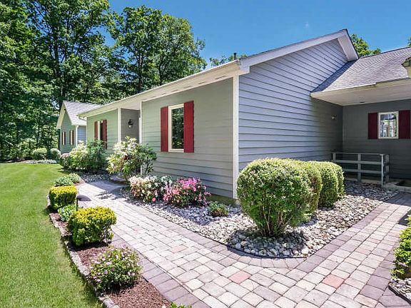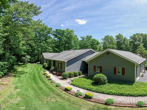 Tucked well off the road on a ten acre forrested lot sits a meticulously well maintained 2,800 square foot ranch home with an attached three car garage. One floor living at its finest, all protected with a high tech security system with cameras. Gleaming hardwood floors greet you and continue through the home. The large living and dining rooms are perfect for formal entertaining. Granite countertops, a fabulous pantry and ample cabinet space make for a happy chef. The large breakfast room is great for casual dining and family fun. The wood stove in the spacious family room takes the chill off of cold winter nights plus provides much lower heating bills. A powder room and laundry are conveniently positioned. The owner's suite is a definite WOW! Plenty of room to enjoy your favorite TV show plus a sitting room that is currently used as an office. Plentiful closet space and a beautiful bath complete the suite. There are two additional good-sized bedrooms and a hall bath. There is a full basement. The owners have maintained, serviced or replaced all mechanicals during their stewardship. Attached to the home is a lovely screened porch perfect for enjoying morning coffee. All of this overlooks an impressive back yard oasis. The propane heated in-ground pool and spa are surrounded by extensive hardscape. A cabana and wet bar (seats 8) is complete with a full bath and storage units. Outdoor lighting gives off a tropical feel. Of course there are Speakers (14) throughout the house and yard. A built-in grill is also part of this extra special yard. Professional landscaping includes specimen plantings and several perennial gardens. If that is not enough~.enjoy the small pond with waterfall and resident fish. The large hand dug pond is on the side and can be seen from the sitting room. In the back corner is a meditation garden lending peace and quiet to the occupant. Come visit. You won't want to leave!!!!