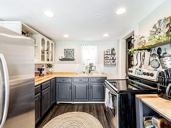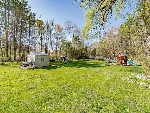 Absolutely adorable farmhouse-style home on a simply gorgeous 1-acre lot. This property has been lovingly updated as evident by all of its character and charm. Recent updates include painting throughout, laminate wood flooring in several rooms, modern lighting fixtures, the amazing staircase, and the delightfully stylish kitchen with its multi-tone cabinetry, butcher block counters, subway tile backsplash, floating shelves, stainless appliances & extra large pantry for all your storage needs. Electric has been updated w/ a new panel, there are 2 newer sump pumps, and mostly all replacement windows. Home is vinyl sided with architectural shingled roof. There's a great big attached storage area and carport as well as a shed. Located within miles of local hot spots downtown Northampton & Easthampton, this splendid little oasis offers so much! Join us for 1st viewings at the Open House Sunday 5/15 11-1pm.