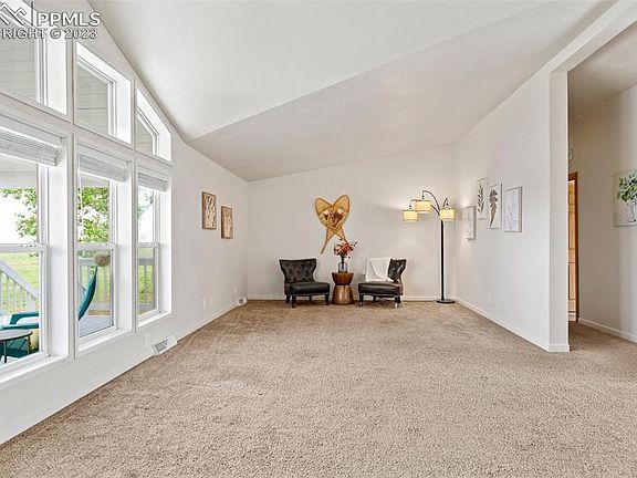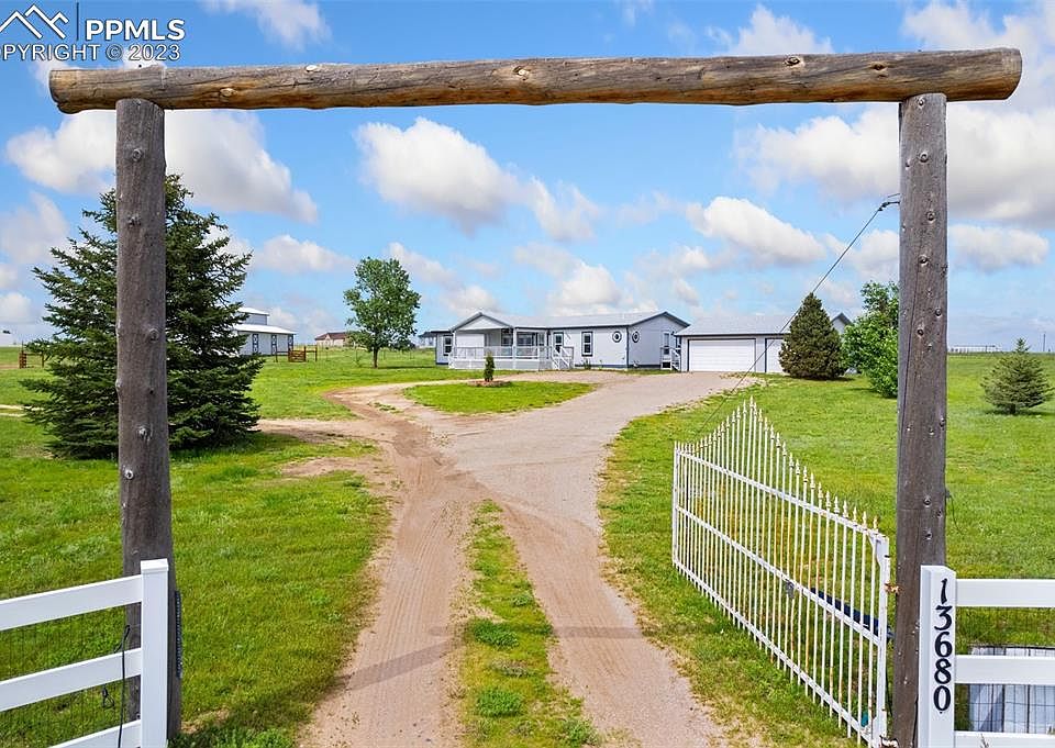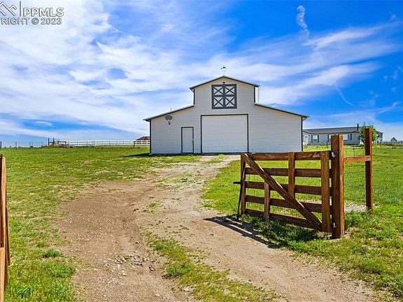 This stunning property offers the perfect blend of peaceful country living and convenient access to town amenities. Situated on a cul-de-sac in a quiet community, this home provides a serene and tranquil environment. One of the standout features of this property is the spectacular 40'x44' barn. It comes complete with a concrete floor and a 15'x44' loft, ideal for storing hay or additional belongings. The barn is thoughtfully designed with a ¾ bath, hot water, a heated mudroom, and three horse/animal stalls, chicken and duck room. Ample space for a workshop, and the oversized door allows for easy storage of vehicles or RVs. The barn is well-lit wired with 220v power, ensuring functionality for various needs. Enjoy the convenience of whole-house air conditioning and indulge in relaxation in the master bathroom's soaking tub. Outside, you'll find a spacious 21'x31' wood deck at the back of the house, perfect for outdoor entertaining and relaxation. The fenced yard is pet-friendly, providing a safe space for your furry friends. The front deck, spanning 21'x31', is covered and offers breathtaking views of Pikes Peak and the Front Range, creating an idyllic setting for enjoying Colorado's natural beauty. The interior of the house is generously proportioned, featuring an oversized living area and a separate dining area with a walkout. The large eat-in kitchen is well-equipped, boasting standard features such as a dishwasher, refrigerator with an ice-maker, walk-in pantry, trash compactor, and gas range. Additional amenities include a detached, oversized three-car garage with remote access. With the barn's parking capacity for three more vehicles, there is no shortage of space for your vehicles and storage needs. Situated on a sprawling 2.55-acre lot, this property is zoned for horses and is fully fenced, providing ample space for your equestrian pursuits. The entry gate is electric with an intercom system connected to the house, ensuring both security and convenience.
