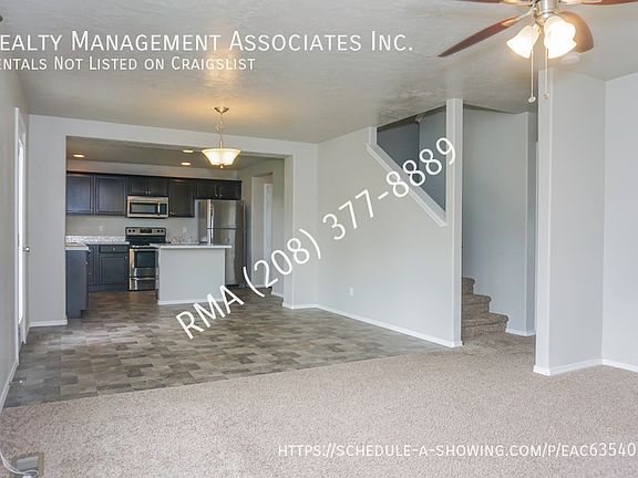 This beautiful home in Caldwell is perfectly located for easy interstate access and Lake Lowell recreation area. Home is a 4 bedroom/3 bath with family and living room. All bedrooms are located on the second floor. Nice size master bedroom with walk in closet and master bath. Beautiful colors and finishes throughout. Full kitchen with all stainless steel appliances and island. Washer and Dryer hookups. Fantastic backyard with covered patio and fire pit. Fully fenced and auto sprinklers. Tenants are responsible for yard care. 2 car garage.