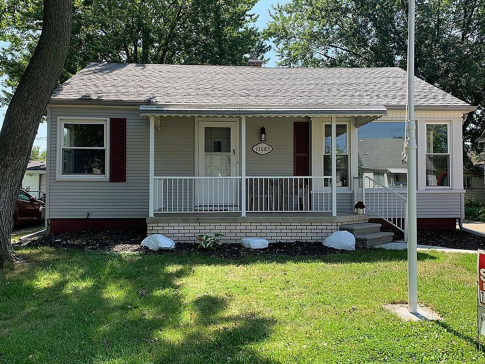 Southgate two-bedroom, covered sitting front porch, 1 and 1/2 bath, ceiling fans, central air, ample closets and cupboards, dishwasher, microwave, full un-finished basement, fenced yard, newer roof and cement, new floors, two-car garage with new roof and siding, all freshly painted, move-in-ready. $127,000.