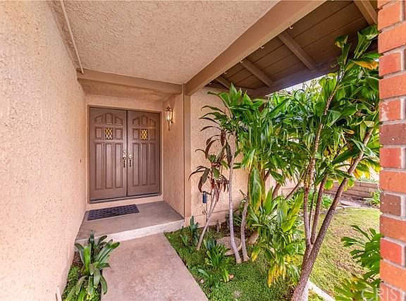 Welcome to this wonderful single level home with 3 bedroom and 2 bathrooms on an elevated lot in the sought after Marlbobough Country community of Moorpark. When you step through the front door youll feel the cozy comfort of this home. Notice the high ceilings, polished concrete floors, and the fresh new paint. The family room has dark bamboo floors, a gas fireplace, and is open to the kitchen. Stroll down the hall to the bedrooms and bathrooms. The primary suite has high ceilings, ceiling fan, sliding glass door to the backyard and attached en suite. The backyard has a wonderful entertaining area, huge grassy area, and fruit trees that include; banana, grapes, passion fruit, persimmons, and dragon fruit. This home also has dual pane windows, newer carpet, newer water heater, and newer HVAC including all ducting. This home has been meticulously maintained and must be seen.