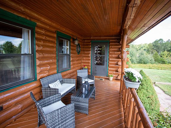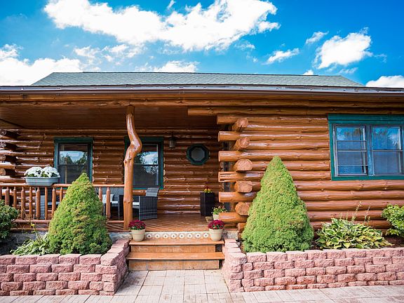 Red Pine Log Home! Wanting to go on Vacation?? Look no further! The exterior has been professionally restored, new gutters, new furnace & air conditioner, updated landscaping and more! Enjoy summer, fall and spring sitting on the front and back deck overlooking your 3 acres of land. This home includes a master bedroom, walk-in closet, and balcony. The finished walk out basement is perfect for entertaining along with a large media or game room. Make this home your everyday get away! Please watchvirtual tour!