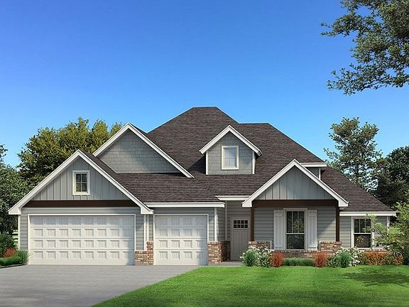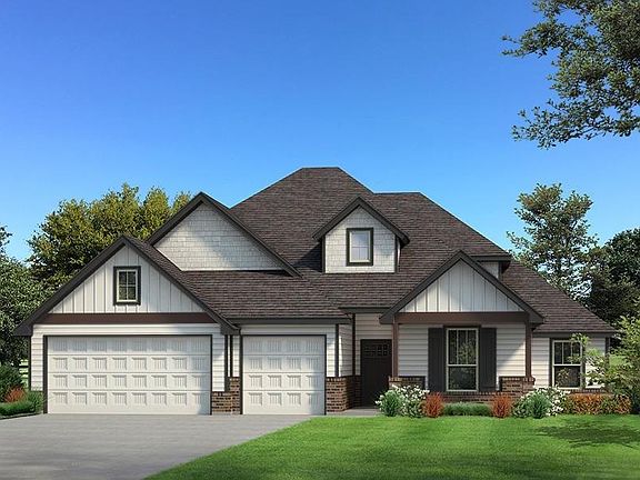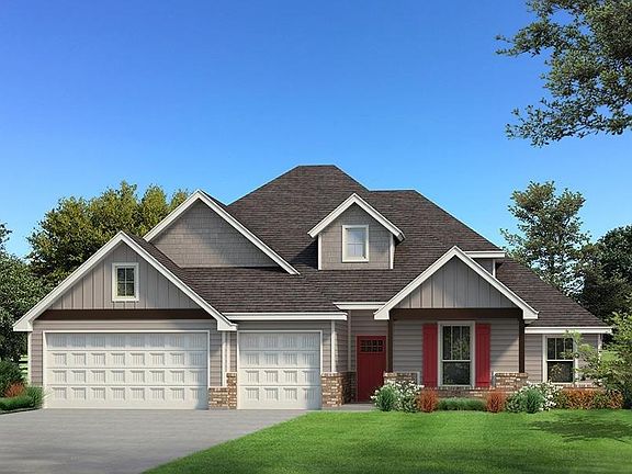 This Hazel Bonus Room floor plan encompasses 2,620 Sqft of total living space, which includes 2,400 Sqft of indoor living & 220 Sqft of outdoor living space! There is also a 570 Sq Ft, three-car garage w/ a storm shelter installed. Home offers 4 bedrooms, 3 full baths, 2 covered patios, a utility room, & a bonus room! Living room provides a corner gas fireplace w/ our stacked stone surround detail, 3 great windows, wood-look tile, elegant crown molding, & a ceiling fan. Kitchen has built-in stainless steel appliances, modern tile backsplash, 3 CM countertops, a large center island, pendant lighting, & custom cabinetry to the ceiling. The prime suite features a sloped ceiling detail, windows, our cozy carpet finish, & a ceiling fan, while the main bath has a dual sink vanity, a stylish walk-in shower, a Jetta Whirlpool tub, & a walk-in closet w/ access to the utility room. Covered outdoor living has a wood-burning fireplace, a gas line, & a TV hook-up! Home also has Healthy Home Technology, a tankless water heater, a whole home air purification system, R-44 insulation, & MORE!
