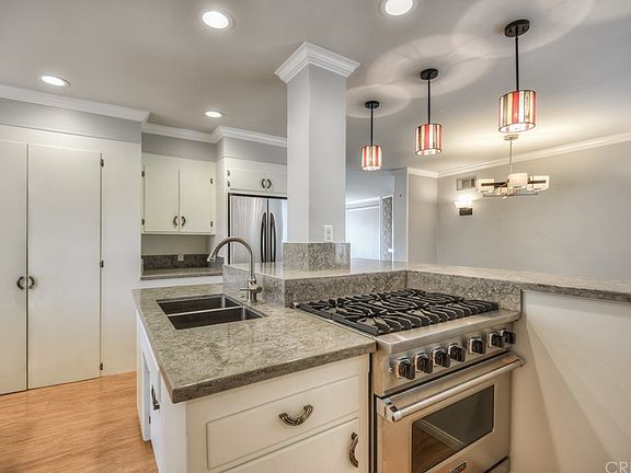 Nothing to do but move in! 4 bedrooms & 2 bathrooms with lots of custom features! Spacious living room with bay window and crown molding! Amazing chef's kitchen with gorgeous stone counter tops, breakfast bar, Viking 6 burner gas range with oven, recessed lighting, lovely paneled floors, lots of cabinet & counter space! Open to dining room and family room with fireplace! Master bedroom with sliding door to covered backyard patio and above ground hot tub. Master bedroom has private 3/4 bath! Gorgeous backyard beautifully landscaped with with patio and block wall, perfect for entertaining! Central air & heat, dual pane windows! Washer & dryer & refrigerator & hot tub included. Rain gutters. 2 car attached garage! This house is a gem!
