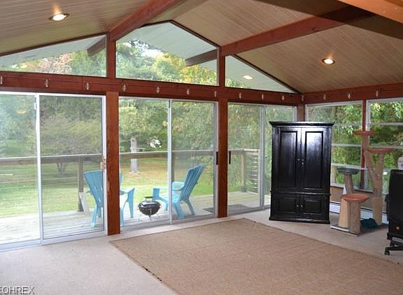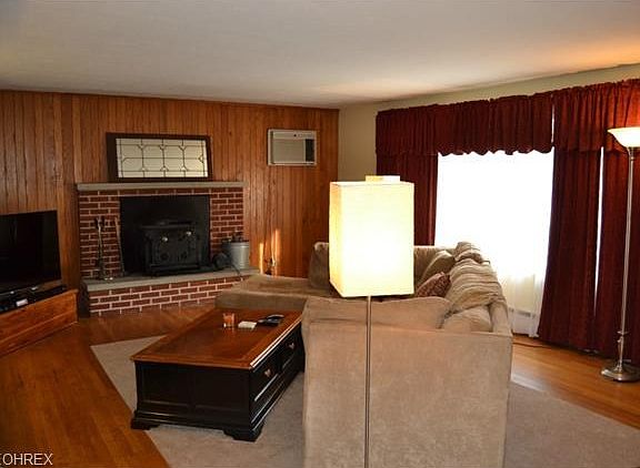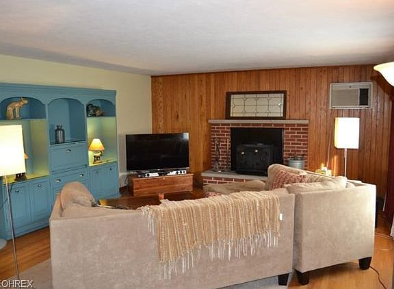 SUMMARY: 2,295 sq-ft of finished living space. Updated 3 bedroom home in subdivision with 3 acre lake. Kitchen has maple cabinets with eat-in breakfast hi-top table and walkout to a 6' x 20' wood deck. Living room with wood burning fireplace. Bathroom has granite counter top with double vanity sinks. Large basement Recreation room with full bath and separate storage area with walkout access to patio, garage, parking, and backyard. Enjoy your wooded lot from family room with 3 sided window panoramic view. Large 2 car attached garage is 27' deep x 22' wide. NOTE: The Geauga County Property Records list the finished living area at 1,390 sq-ft. http://accessgeauga.co.geauga.oh.us/cards/2011/29/29-092000_001.pdf