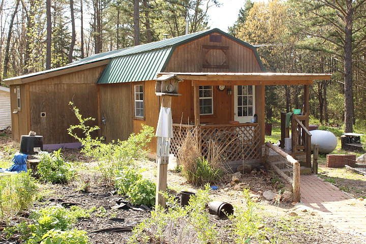 Own a piece of the Ozarks that comes with a TINY HOUSE. Use it for your weekend get away, hunting cabin or move in permanently. A prefab building with two additions for a bath and living room. Property has electric, a drilled well and a lagoon. Some raised beds for your garden.