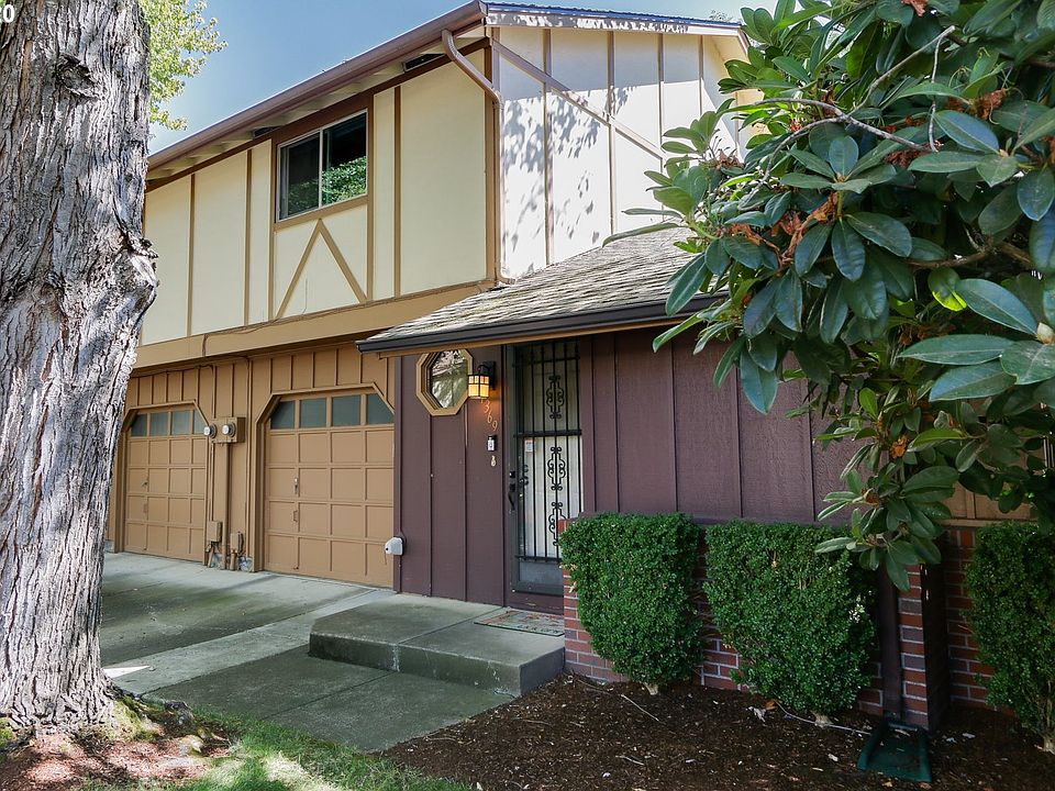 Cute & well kept condo end unit with a fenced backyard and patio. Backs to green-space. Close by transportation, bike path, restaurants & shopping. Newer plank flooring downstairs & in upper bath and landing. Sale includes kitchen appliances, washer & dryer. Wall AC up & down stairs. Master bedroom has 2 closets. Monthly dues are $190/month. Extra deep garage and space under eaves provides additional storage. A few photos presented are from past listing
