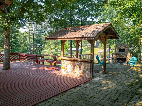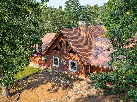 This beautiful chink log cabin sits on 3.7 acres with 228 feet of Lake frontage. The Log home is complemented with cathedral ceilings, stone fireplace, awesome stone accented kitchen with corian counter tops. The large Master BR has views of the Lake and Master bath has a tile shower. The deck has a grilling area for entertaining the Family and ALL of their friends. You can take an easy walk to the boat house with boat lift, and sitting area. The property also has another Pool Table room/Man cave/Bedroom, Mother -In- Law Suite Area, you make the choice. The grounds that this cabin sits on can relax you without even looking at the water. Beautiful level front yard, with a workshop/storage.