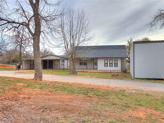 WOW! Check out this 4 bed 2 bath brick and frame home sitting on a quiet 1.3 acres for a nice secluded feel! Features an indoor utility room, large updated kitchen with new counter tops, backsplash and an island with a breakfast bar and new paint throughout. Living Area has a charming Mantel and wood burning fireplace. Enjoy a large covered front porch and back patio. Back patio has a large underground storm shelter and the HOT TUB STAYS! Property has an electric gate and a fully fenced back yard with a storage shed and 2 metal framed shops on a gravel pad approximately 30x20 and a 20x20. Imagine enjoying your nice cup of coffee with this splendid view! MOVE-IN READY and Bridge Creek Schools. Roof and A/C Unit replaced in 2020. Well pump replaced in 2022. USDA eligible and no HOA!