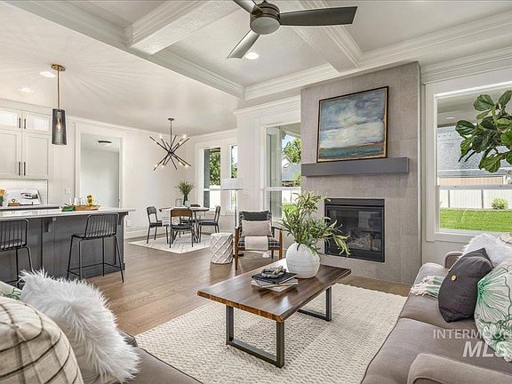 Snag the last home in Serenity Springs, a quaint Venta Home project located in the perfect central Meridian location. You'll love the HUGE RV garage and the functional rambler style living. Split bedroom plan, spacious bedrooms and a functional main level bonus/flex/office space strategically placed away from all the bedrooms. The kitchen is truly a dream offering a sprawling island, Wolf/Sub Zero appliances including a refrigerator and custom cabinetry. The great room boasts hardwood floors, a gas fireplace with charming mantle and oversized windows overlooking the full-fenced backyard. Primary suite offers two sinks in the private ensuite and a fully tiled walk-in shower. The RV garage is a true show stopper with epoxy, insulation and a 12' door. HOA dues include fiber internet monthly service fee. Don't miss this opportunity to own the model home which is packed with upgrades!