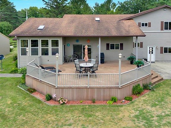 Pull up to this showstopper on a paved road and black-top drive, and savor the scenery of this gorgeous home under shade trees. Whether you are looking to upgrade and upsize or retire on a peaceful plot of acreage, 1369 E. County Line Road could make those dreams a reality! This property is, without a doubt, the jewel of Ogemaw County! An expansive 3,229 square foot home is situated on beautifully manicured 23.31 acres. With a truly open floor plan, holiday gatherings can be spent around the fieldstone, gas fire-place; afterwards, you can retreat to your private upstairs primary suite. A spotless jacuzzi room steps out onto a huge composite deck with tranquil views galore! Walk or ride the trails past the pond and into wooded areas - there’s even a deer blind and food plot! This property boasts an immaculate 5882 square foot garage complete with a bar, office area, automotive bays, and even a paint booth! With infrared heat, it is an impressive space for your car projects, collections, and/or toys! AND for equestrians, there’s a 50 x 50 horse barn including four 12 x 12 stalls (complete with concrete floors, drains covered with treated wood, a hydrant, and a tack room)! A 24 x 32 storage building with a 12 foot lean-to complete this property.