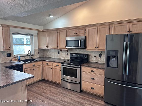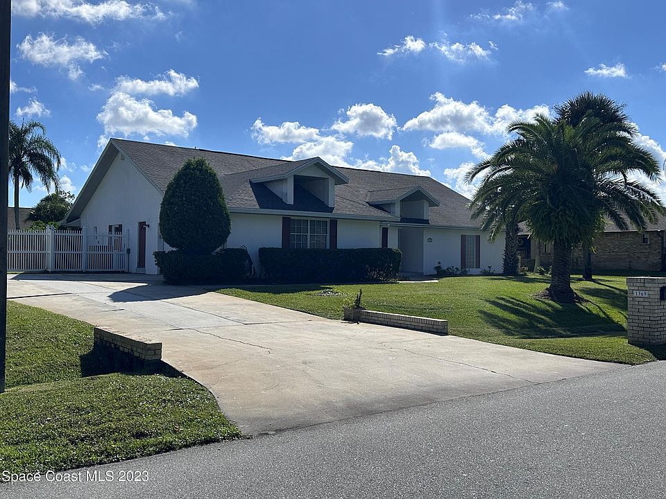 Huge home in West Melbourne. This home boasts an amazing lot that is completely fenced in with white vinyl fencing. The driveway is spacious and ready for as many toys as you can bring. As you make your way into the house you will find a large entry foyer on this split plan home. There is a formal dining room and a formal living room. Just steps away you have a newer kitchen and an eat in space that opens to a beautiful family room with a fireplace. With two bedrooms and a bath off the family room it allows for a cozy family atmosphere throughout the home. The owner's suite has two large closets and a spacious shower. This home has a new roof in 2023 and new gutters, AC from 2019, fresh Paint throughout the home