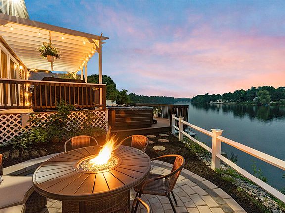 Stunning WATERFRONT home in a fantastic commuter location, close to shopping and conveniences. This charming home has been well maintained, and has over $100K of updates in the last two years (like CENTRAL AIR). You will fall in love with the character and gorgeous views of the river from almost every room in the house! Imagine feeling like you are on vacation every day while relaxing on your expansive two-tier waterfront deck! Enjoy a beverage on the firepit patio or lounge in your hot tub and feel the stress melt away. A tiled foyer with a vaulted ceiling greets you as you walk into the home, and the interior of the home has been freshly painted throughout. The living room, with a lovely gas fireplace, is open and bright with more incredible views of the river, and the kitchen boasts a delightful breakfast bar with quartz counters. The dining room and den/office nook round out the first floor. Upstairs, the primary suite commands yet another stunning view, and there are two additional bedrooms with plenty of storage. The beautifully finished loft over the garage boasts large windows and, yes, more wonderful views. It has a private bedroom and bathroom, a sitting area with wet bar, and a balcony. This space would be perfect as an in-law, guest suite, Airbnb, or private retreat. It’s hard to overstate how wonderful it feels to sit in serenity by the water! All this and a huge garage and basement too! Come make it yours today!