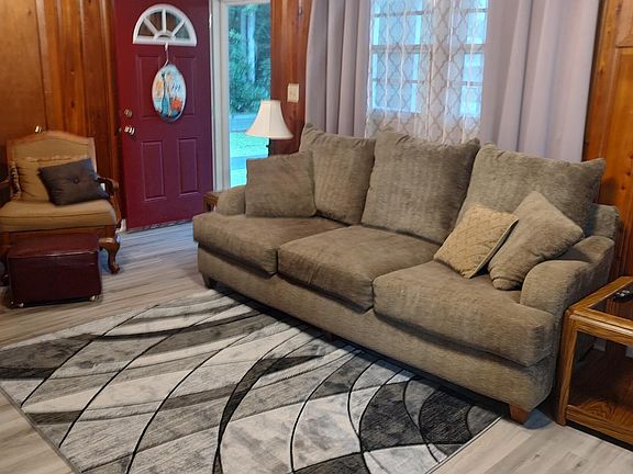 You don't want to miss this one! Quaint second-row Lake Marion home with easy access to the water. This 3BR/2BA home located on a quiet, dead-end street has a front covered porch and large backyard that is wooded on two sides. The covered patio/carport offers a huge space to relax and enjoy the second-row lake view. The large workshop can be used as a garage or storage for tools and lake toys. In the back is a large metal carport for boat or vehicle parking. There are multiple launch ramps and golf courses just minutes away. The home has new flooring throughout and is being sold fully furnished.