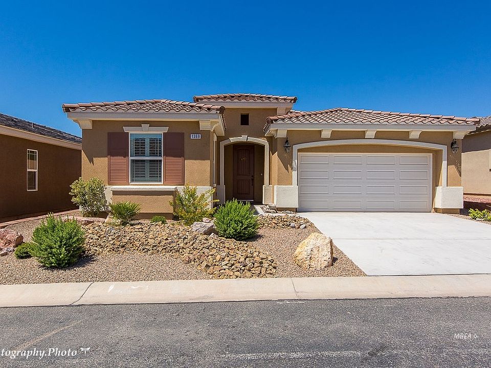 This exquisite home is located on the Canyons Golf Course. The perfect location to enjoy every minute of what Mesquite has to offer! This fabulous home is graced with 9' ceilings, dream kitchen with extended cabinets, spacious master bedroom with suite amenities, charming guest suite area, and an office/den. Do not miss the oversized covered patio with golf course and Mountain View's , wonderful for relaxing and entertaining.