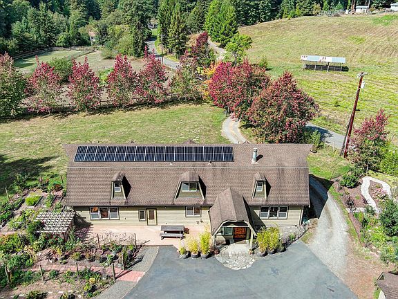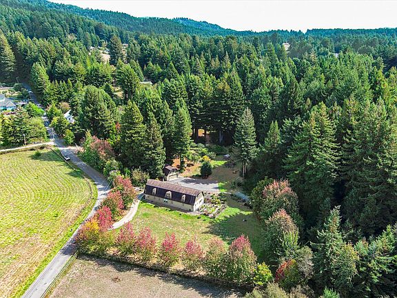 Escape to your own private oasis on this incredible 5.5-acre property, just minutes from downtown. This beautifully maintained Gambrel-style home offers a perfect blend of contemporary design and natural beauty. Wander through the orchard, gardens and explore serene redwood trees and walking trails that wind through two peaceful ponds. Beyond the orchard is a remodeled cottage. Don't miss the upstairs featuring ample areas for a meditation/yoga room, recreation or entertainment. While the detached garage features a bonus unfinished room above, ready for your vision. The perfect blend of trees and open space, truly a hidden gem. This property has been upgraded with solar power, and a paved driveway. On city water and a well maintained septic system. Don't miss this unique country property. Solar panels are backed up by 2 tesla batteries. In the kitchen there is a reverse osmosis water system.