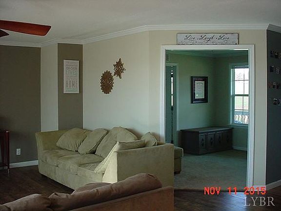 Great Home on 12 acres...Located 20 miles from Lynchburg and Liberty University. One level home with beautiful large kitchen open to the formal dining room and great room. All 3 bedrooms have walk-in closets plus an office adjoining the master bedroom. A rocking chair front porch, big rear deck and oversized detached garage!
