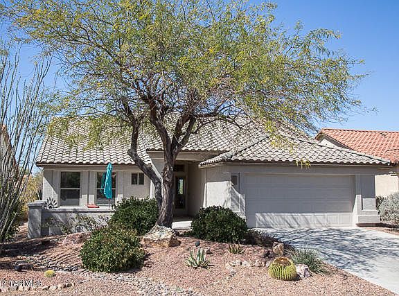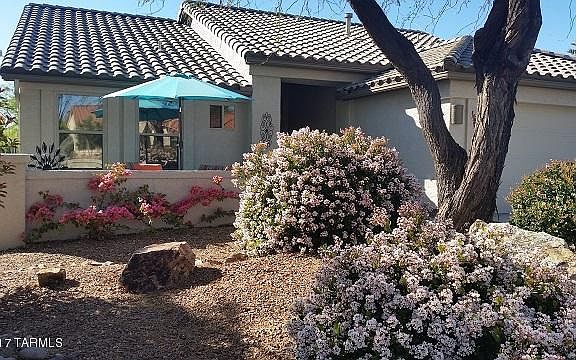 Bright, Light & Open Floor Plan: 2 Bedroom, 2 Bath home with Den on the Golf Course with Mountain & Sunset Views! Exterior was just painted (March 2017). Kitchen/Dining is Open to the Great Room. Tile in the Foyer, Kitchen, Baths & Hallways. Ceiling Fans in the Great Room, Den & Bedrooms. Kitchen has Reverse Osmosis, trash compactor & pull-outs in the Pantry Cabinet. Master Bedroom has a walk-in closet & a slider to the patio. The backyard overlooks hole #1 on the Quail Golf Course. There is a soothing water fall, fire pit, gas stub for the BBQ & also your very own lemon tree! Garage is EXTENDED 4 ft. & has built-in Cabinets & Workbench. It is a short walk to all the amenities that Quail Creek has to offer. Enjoy the Quail Creek lifestyle for a fraction of the cost to build new!