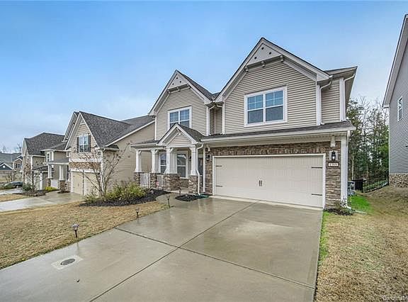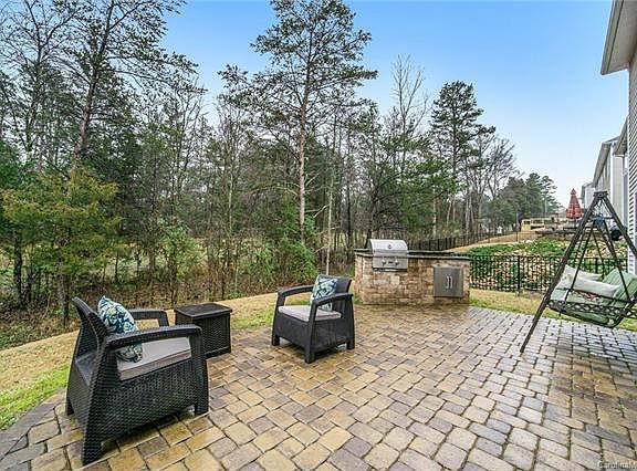 THIS PROPERTY IS AVAILABLE FOR SHOWINGS! This 5BR/4BA open floorplan is perfect for entertaining! Beautiful outdoor kitchen w/oversized patio on a large private, partially wooded lot backing to common area. Enjoy your morning coffee on the covered front porch. Neutral paint & hardwood floors throughout. Formal dining room could be a home office. The gourmet kitchen w/huge island, beautiful white cabinets, stainless steel appliances, double ovens, gas cooktop, microwave, granite w/upgraded ogee edge, tile backsplash, breakfast room & pantry. Large family room w/ceiling fan & gas fireplace. All 4 FULL baths have granite vanities & tiled floors! Private first floor guest suite. Drop zone next to garage door. Spacious Master suite with his/hers closets, trey ceiling and luxurious private bath. 5th bedroom is being used as a bonus room. Upstairs laundry room. Property faces northwest. Excellent schools! Zoned for Cox Mill HS in 2020. (Shoe covers & gloves will be provided at showings).