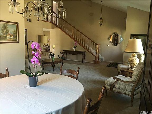 NORTH UPLAND LOCATION- Peace of mind at it's best. Great location, this home includes 4 bedrooms 3 bathrooms. Spacious formal and dining area, large dual pane windows that allow for lot's of natural lighting. Then step down into a huge family room with wood flooring, fireplace, wet bar and a grand view of the backyard, which leads out through the French Doors to the heated pool surrounded by a lush landscape, aluminum covered patio with outdoor roller shades. Privacy you can appreciate! The kitchen has pull out cabinet shelves for organization and easy access, also a stove top range, breakfast nook and Corian Counter Tops that add a clean finish. One Bedroom located down stairs, ideal for guests. The other three upstairs. " Voila," enter through the French Doors to the huge master bedroom with upgrade padded, neutral colored carpet.