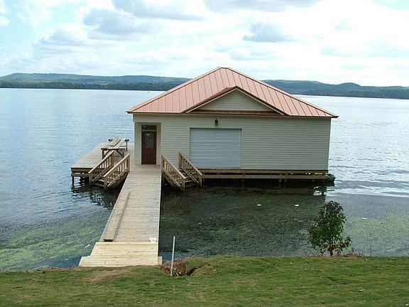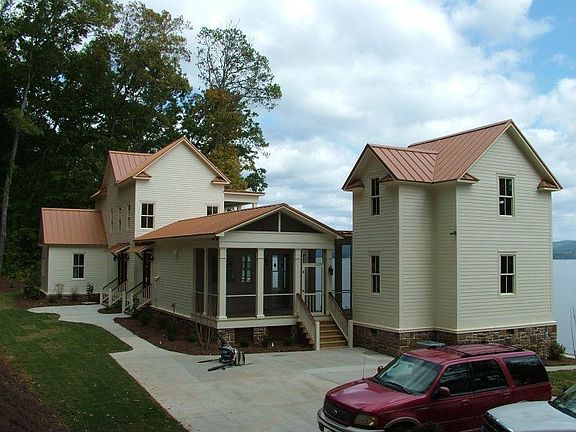 Main channel waterfront home on 1.76 acres features over 200+/- ft. shoreline, elevated lot for 4 season spectacular lake view, 2 slip luxury boat house with electric hoists, 7 roll-up doors, jet ski slip, sun deck and deep water measured 10 ft at boathouse. This custom built home offers 3335+/- sq. ft., 4 BR, 4.5 BA, great room with gas log fireplace & 10 ft coffered ceiling, dining room, living room, game room with wet bar & ice maker, hardwood flooring, vaulted ceilings, breakfast nook with lake view bay window, laundry and main level master bedroom w/luxurious master bath featuring separate custom oversize shower & whirlpool tub. Other amenities include full length covered lakeside decks with bead board ceiling, granite countertops, sod & landscaping with sprinkler system, heavy crown molding, walk-in closets, whole house audio system, all Jenn Air Professional Series appliances including 6 burner 48 gas range/oven with griddle, ice maker, custom cabinets, trey ceiling, French door, concrete drive & walks and screened porch & breezeway.