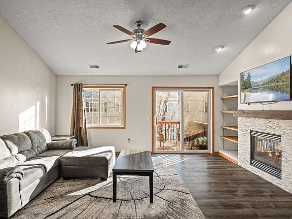 This townhome is conveniently located in Shakopee, close to HWY 169, shopping, and popular restaurants, like The Copper Pint. It’s also near extensive dog-friendly walking trails and a dog park. The one-level layout offers a unique floor plan with space between the bedrooms for added privacy. The 2-car attached garage comes with storage shelves for extra convenience. The open-concept kitchen and living room feature high ceilings and a gas fireplace with a stone surround. The kitchen includes a removable butcher block center island, plenty of counter space, cabinets, and a tiled backsplash. LVP flooring runs throughout the home, except in the two bedrooms and on the stairs, which have new carpet. The primary bedroom boasts a walk-in closet, a private full bathroom, and a new accent wall. A deck off the living room provides outdoor space, and one of the bedrooms or office offers a view of the pool area. Additional features include in-unit laundry, a new roof, a new garage door, and a Google security system. This home combines modern updates with practical living in a prime location.