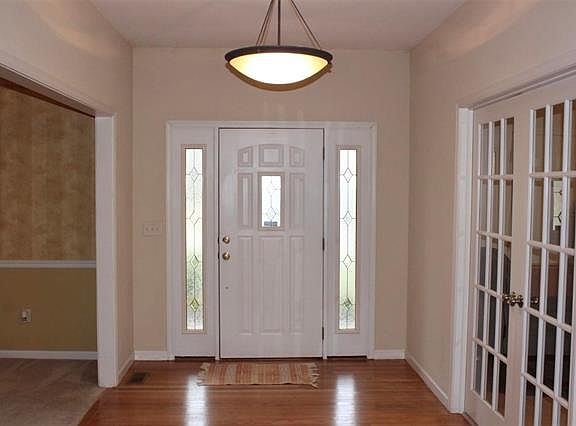 This gorgeous brick, 3 bedroom, 3 bath, executive home sits on a beautiful, large lot backing to trees and is on a cul-de-sac. Upon entering, the main floor offers a spacious and welcoming foyer area with wood floors, a prestigious office with french doors and beautiful built-in shelving, and an elegant formal dining room. The living room has a stone fireplace and an amazing stairwell that leads to the lower level. The kitchen has timeless wood floors, a breakfast bar area, walk-in pantry, and custom kitchen cabinets that offer a blend of white cabinets and wood features that set them apart from all others. The breakfast area opens to a composite deck and overlooks the backyard. The main-floor master has vaulted ceilings and a master bath that has been updated with new flooring and is sure to please. The lower level walk-out offers an abundance of family-room space, two large bedrooms with walk-in closets, a full-bathroom, a theater room and a large! Move in ready!
