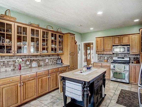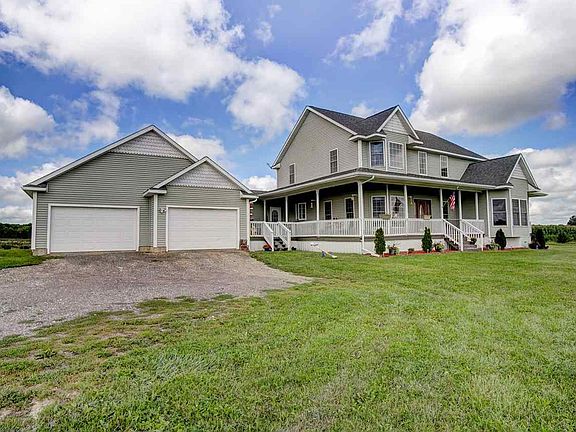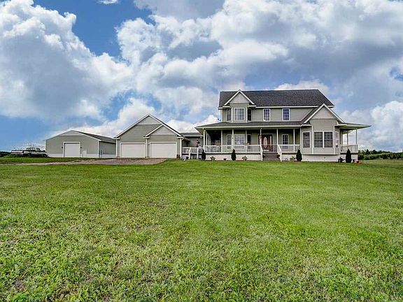 Have you dreamed of living just outside of town in a huge 4 bedroom, 3.5 bath home on 10 acres? Well, here's your chance! The kitchen is a bakers paradise featuring custom cabinets, lots of counter space, and deluxe appliances. The master bedroom and bath are also on the main with a sliding door leading out to the wrap around porch. The upstairs features 3 bedrooms, one of which is a suite with a connected bath. The basement is just waiting for a buyer to transform this space into something special! Along with an attached garage, there is also an additional 60x40 pole building with concrete floors and 220 electricity. This home has so much charm from the plank ceiling to the view--it is truly a must see.