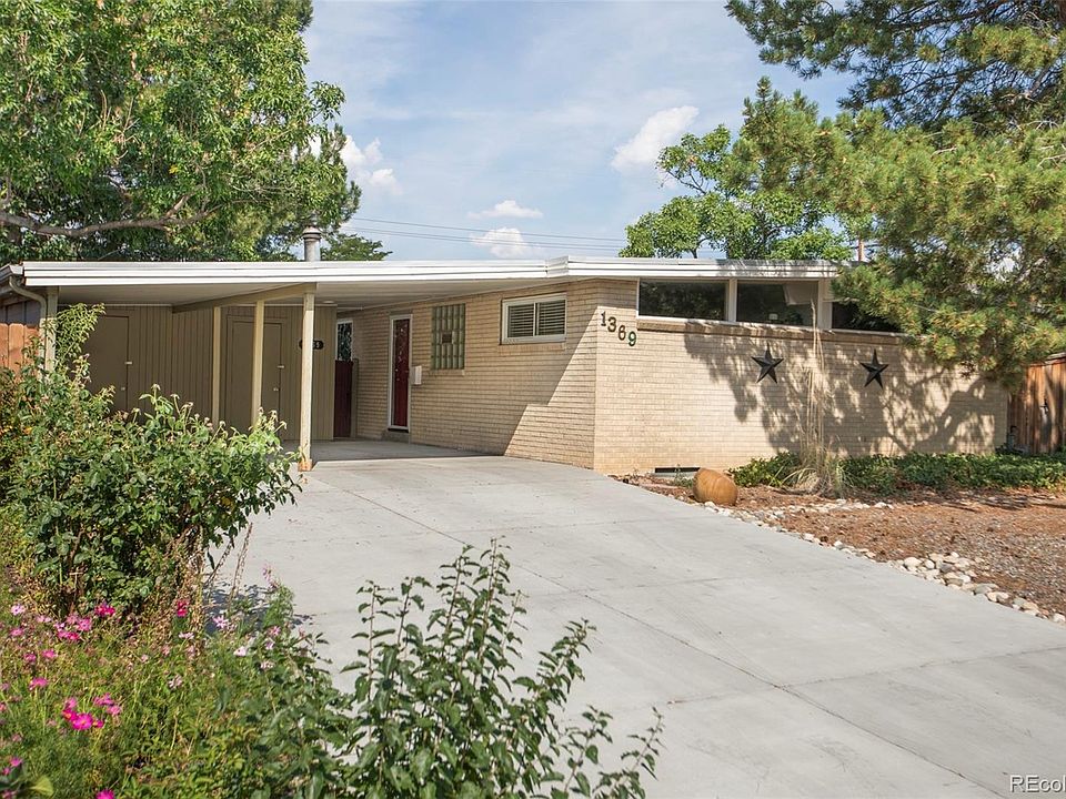 Mid-century charm meets modern comfort in this beautifully maintained Lasley residence, where timeless design blends seamlessly with thoughtful updates. Clerestory and picture windows flood the interiors with natural light, creating a vibrant connection to the outdoors. Anchored by a striking original fireplace, the open-concept living and dining areas effortlessly extend into the kitchen featuring grey cabinetry and a stylish tiled backsplash. A private primary suite with a large walk-in closet provides a serene retreat, while the finished basement — with its own bar — expands the possibilities for entertaining. Escape outdoors to a covered patio and private backyard, ideal for gardening or relaxation. With most major systems recently updated, this home offers both character and peace of mind. A two-car carport plus two additional off-street spaces ensure ample parking, while a central Lakewood location places local parks, nature trails and city conveniences within easy reach.