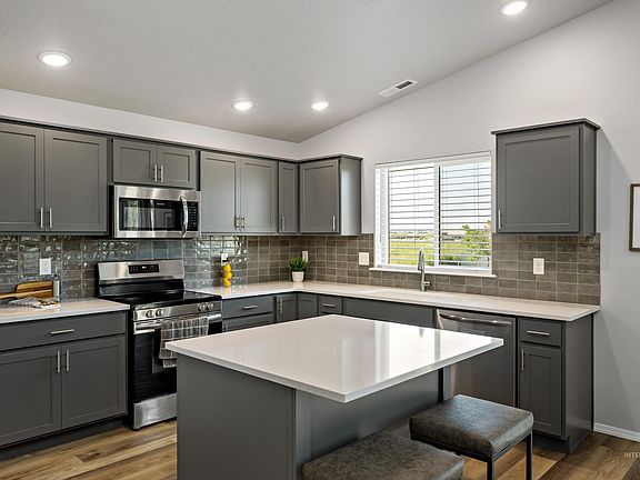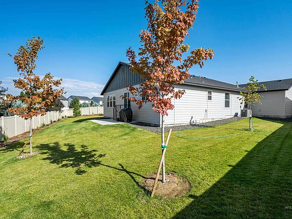Truly better than new! New construction just ten months old and still within builder’s warranty plus seller has invested over $20,000 in landscaping, window treatments and other upgrades! Move right in and enjoy the ease of a new home without a punch list of immediate projects and expense. Fantastic single level floorplan with four bedrooms set on a huge lot with three-car garage. This home’s placement offers views to the Owyhee mountains from the living areas and back yard. Gorgeous great room with vaulted ceilings, tons of natural light, and flow to the generous, fully landscaped back yard. Huge kitchen with an abundance of counters and cabinets, large island and beautiful quartz countertops. This floorplan offers so much flexibility with four true bedrooms and a layout that maximizes privacy. Terrific Meridian neighborhood with community pool and additional neighborhood amenities coming within the year as the neighborhood builds out. Accessible location. Amazing opportunity!