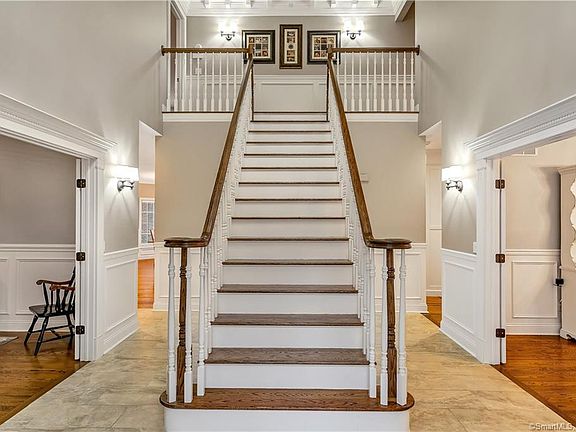 EXQUISITE CRAFTSMANSHIP... beautifully designed home offers 3 levels of finished living space. A two-story column porch provides an entryway to a grand foyer with thick dentil crown molding and wainscoting leading to the formal dining & living rooms. A recently remodeled kitchen featuring custom cabinetry, hardwood floors with inlaid design, center island, quartz counter tops, high end stainless steel appliances and a wet bar with a built in wine fridge is a testament to the well thought out design by the current owners. Among some of the other highlights are an eat-in area/breakfast nook, mudroom, laundry room and 3-car garage. The family room boasting a cathedral ceiling & a wood-burning fireplace provides a comfortable gathering space for friends & family. Four bedrooms are on the second floor and feature hardwood flooring. The master bedroom offers a bump out area, walk-in closet and full bath with a jetted tub, shower and a second walk-in closet. A large en-suite offers a walk-in closet and full bath w/shower. A second en-suite offers a half bath, which the 4th bedroom has access to a full bath. Additional amenities include a security system, invisible canine fence, central vacuum and an automatic full house generator. Finished walk-up attic offers 700 SF. This 4 bedroom, 3 full & 3 half bath colonial will not disappoint! Enjoy all this shoreline town offers, including an award-winning school system, charming town center with shops, restaurants, beach and commuter rail. Dining room chandelier and family room rods/curtains do not convey. Call Rose Ciardiello, listing agent, to schedule a showing - c: 203.314.6269