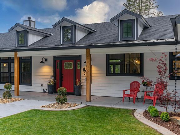 This beautiful modern farmhouse sits on 11 acres just minutes from downtown Sutter Creek, designed with both style and efficiency in mind. The 4-bedroom, 3-bath home features an open floor plan with vaulted ceilings, a cozy fireplace, and large windows that showcase peaceful hillside views. Luxury vinyl plank flooring runs throughout, while the gourmet kitchen boasts high-end appliances, an expansive island, soft-close cabinets, and a butlers pantry. Built for energy efficiency, the home includes 2x6 exterior walls for enhanced insulation, triple-pane windows, and a double-insulated roof. The master suite offers a spa-like bathroom and walk-in closet, while each guest room offers a walk-in closet at well. The outdoor patio and landscaped garden complete this exceptional property.
