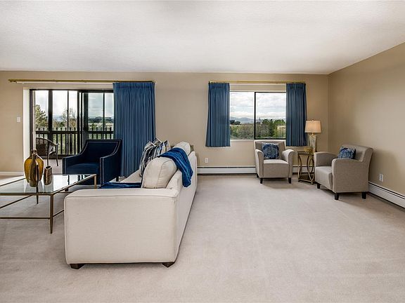 From the minute you walk into this large 2 bedroom / 2 bath corner unit, you notice the striking views of the front range mountains over the tree tops of the golf course below. This is an amazing 55+ community where the social events and activities are endless, if you want to participate. If not, sit on one of the two large terraces and enjoy the Colorado sunsets with a couple of your close friends. The home comes with plenty of storage (a large storage locker and many closets in the home), a heated indoor parking spot, washer / dryer and a large open floor plan. The master suite has 2 large closets, linen closet and access to one of the 2 glassed in / screened in terraces. The high floor, accessed by elevator, with beautiful views and tranquility, make this the home that you want. Monthly HOA dues include use of the 10M$ clubhouse, community pool (both inside and out), exterior maintenance w/roof, fitness facility, heat, insurance, sewer, snow removal and water.