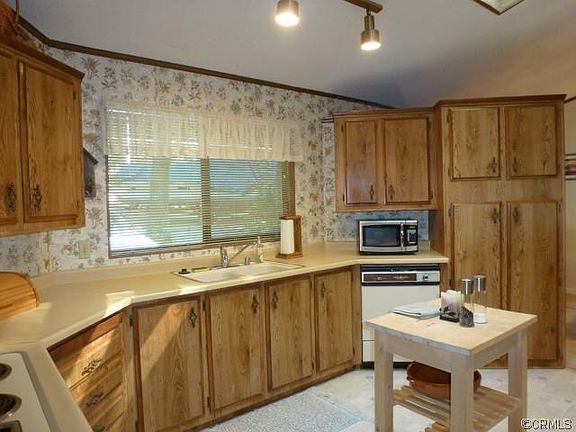 SINGING PINES! You will enjoy this special place for your permanent home or weekend get a way. This 3 bedroom, 2 bathroom 1983 manufactured home features a spacious deck perfect for entertaining. A split floor plan, vaulted ceilings, free standing fireplace, skylights , dual pane windows and abundance of cabinets are just a few of the things that make this home so desirable. Large bright kitchen boasts, skylights, double ovens, dishwasher, cook top and includes a stainless steel side by side refrigerator. Dining room complete with a glass front built-in china cabinet. Master bedroom has a large mirrored closet doors and a bath with soaking tub and separate shower. On the opposite side of the house are two guest bedrooms and a full bath including a tub/shower. The convenient laundry room has a folding counter and many storage cabinets plus the washer and dryer stay. Detached two car garage and a extensive paved driveway with room for RV, boat or extra vehicles. Donât miss this unique place.