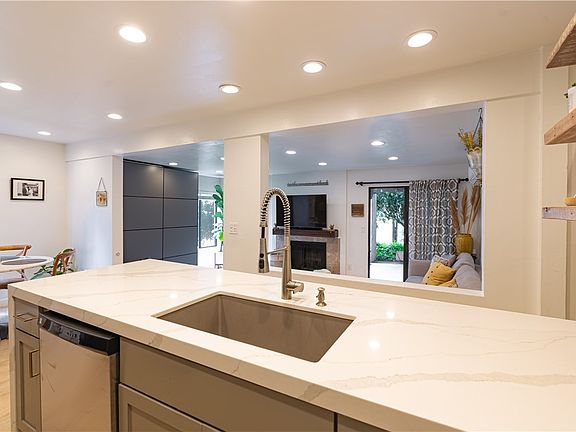 This exquisite 2 bedroom, 2 bathroom single-level home in a private coastal community has been updated and upgraded throughout. The open-concept living area boasts natural light, leading to a gourmet kitchen with stainless steel appliances and quartz countertops. The master suite features a walk-in closet and en-suite bathroom with walk-in shower. The second bedroom is perfect for guests or a home office, with easy access to a sleek second bathroom. Unlike most units in the community, this property has built-in washer and dryer, and air conditioning. Enjoy access to two heated pools and a spa, perfect for sunbathing and relaxation.