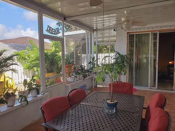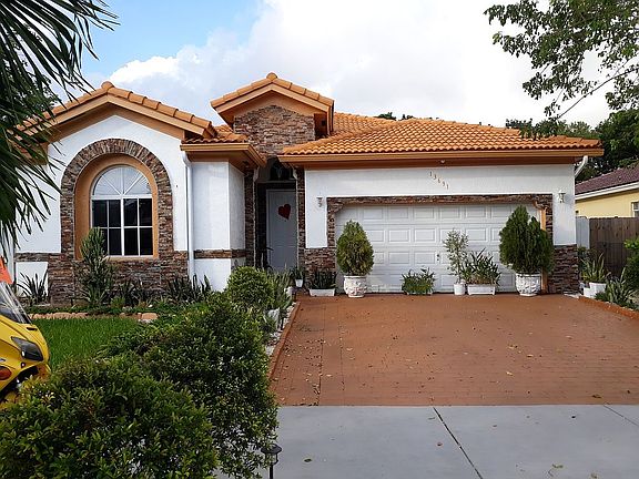This corner property is a head turner. Freshly painted accented by stone tile and a new landscaping design that does not go unnoticed. The roof was pressure washed and painted for years of free maintenance to come. and . The cobble stone driveway and sidewalk surrounding the property are also treated with mold resistant paint. The color combinations simply adds a great touch to an already beautiful home. The backyard is full of medium size trees creating a shady outdoor haven, different color stones cover the ground and throughout the yard one can observe several planters of varied plant and fruit trees seated on painted blocks. The lady of the house has clearly spent a lot of time, money and effort to create an enjoyable outdoor experience with sitting areas for adults and children. Inside this spacious home, you will find a large Master bedroom with a generous walk in closet. The master bath is complete with a double sink, bidet, bathtub and a shower enclosure. There are 3 other bedrooms with ample closet space and 2 additional full size bathrooms. This house has a full kitchen with new stove and dishwasher and newer microwave and side by side refrigerator. There is a large Florida room that may be used for a family room or a game room. This home also boasts of a formal dining room and large living room. As you walk outside through the rear sliding doors, you will find yourself in an enclosure with ceiling fans as well as light fixtures making this large enclosed area enjoyable both day and night. Finally, the double car garage is fully tiled and partly built out to create a storage area. The laundry area is also in the garage and both washer and dryer are new. There is a side door for entrance to the garage from the side yard as well. Yes, with a little work/investment, this double garage definitely has income potential.