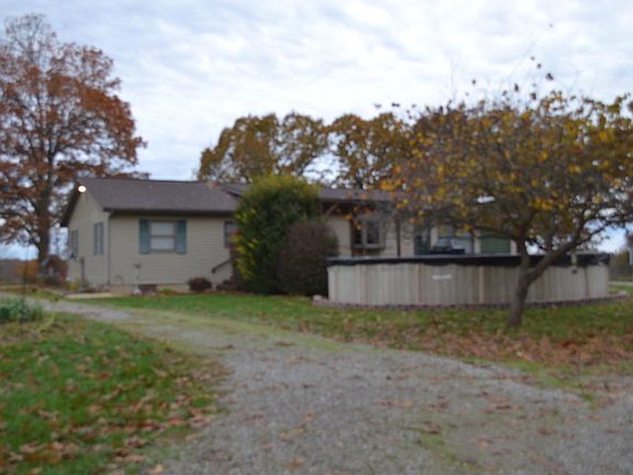 Private setting! 2 Acres m/l with 3 bedroom, 2 bath home with new heat & air 2015, new roof in 2015. All kitchen appliances stay, central heat and air, generator back-up, workstation in hallway, 1 car attached garage and deck. This property is located at corner of state highway and county road, has above ground pool, detached 2 car workshop, chicken house, landscaping and shade trees.